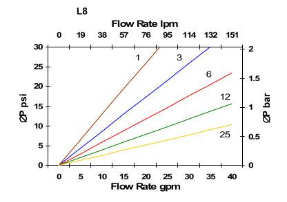 ตัวกรองนี้สามารถใช้งานร่วมกับของเหลวต่อไปนี้แต่การลดลงของความดันจะแตกต่างกันไปขึ้นอยู่กับความหนืดและอุณหภูมิ: