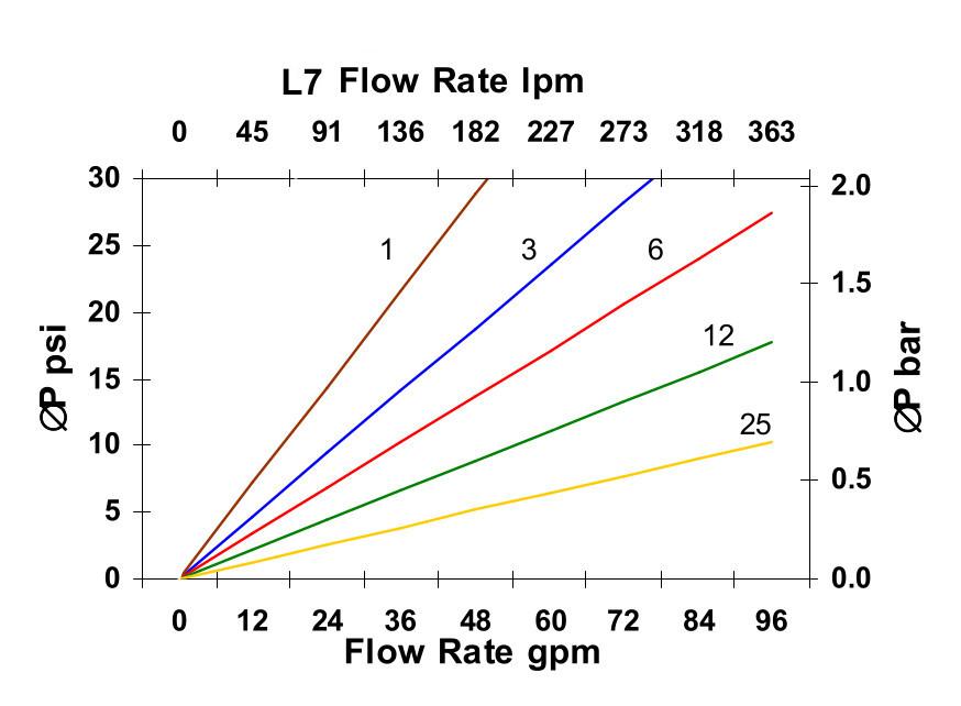 ตัวกรองนี้สามารถใช้งานร่วมกับของเหลวต่อไปนี้แต่การลดลงของความดันจะแตกต่างกันไปขึ้นอยู่กับความหนืดและอุณหภูมิ: