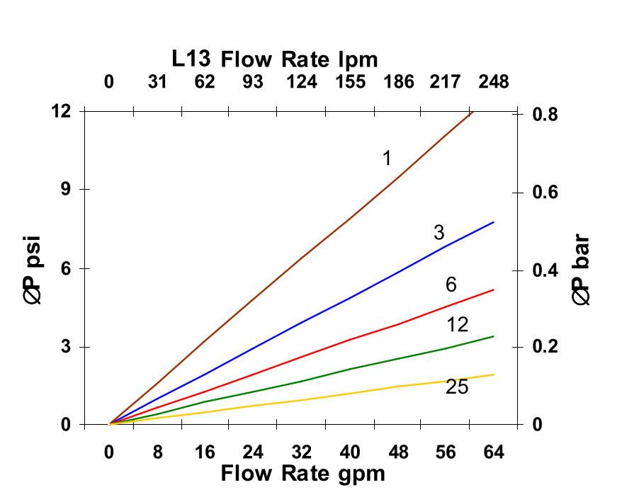ตัวกรองนี้สามารถใช้งานร่วมกับของเหลวต่อไปนี้แต่การลดลงของความดันจะแตกต่างกันไปขึ้นอยู่กับความหนืดและอุณหภูมิ: