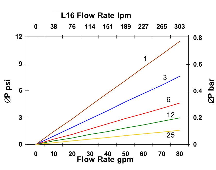 ตัวกรองนี้สามารถใช้งานร่วมกับของเหลวต่อไปนี้แต่การลดลงของความดันจะแตกต่างกันไปขึ้นอยู่กับความหนืดและอุณหภูมิ: