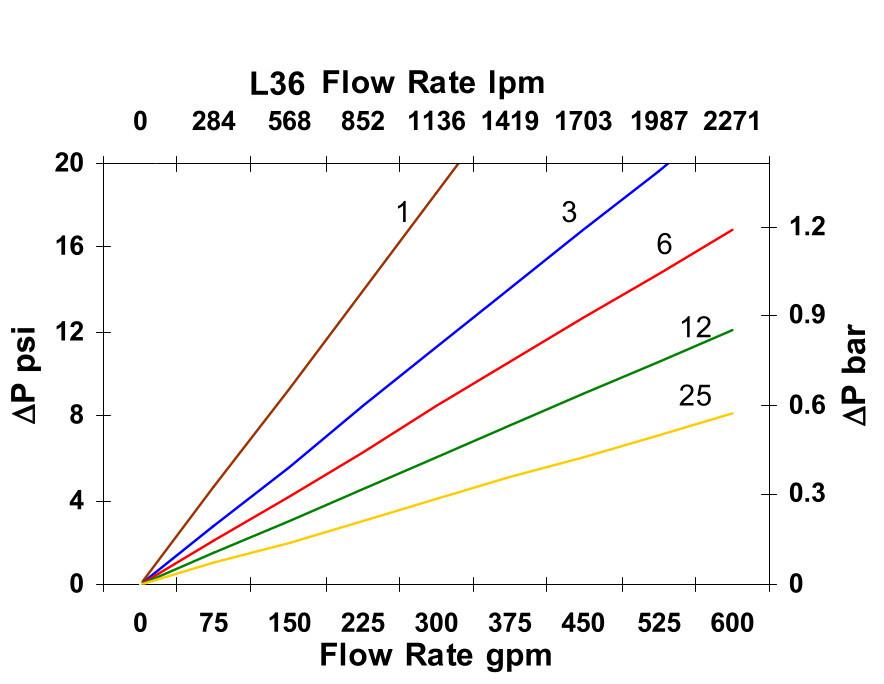 ตัวกรองนี้สามารถใช้งานร่วมกับของเหลวต่อไปนี้แต่การลดลงของความดันจะแตกต่างกันไปขึ้นอยู่กับความหนืดและอุณหภูมิ: