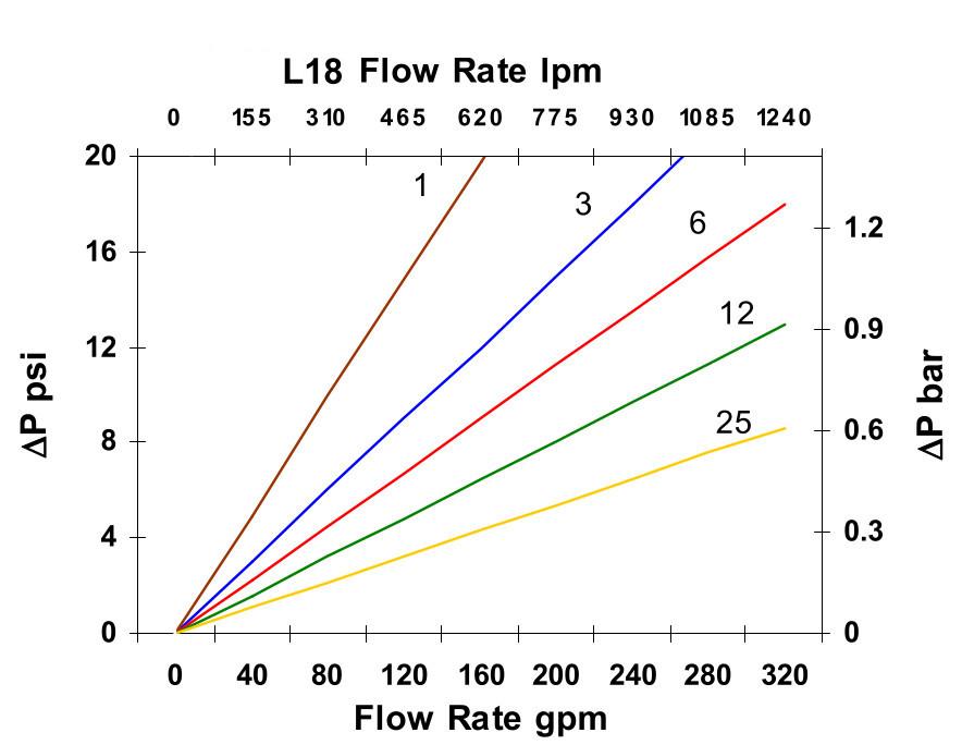 ตัวกรองนี้สามารถใช้งานร่วมกับของเหลวต่อไปนี้แต่การลดลงของความดันจะแตกต่างกันไปขึ้นอยู่กับความหนืดและอุณหภูมิ: