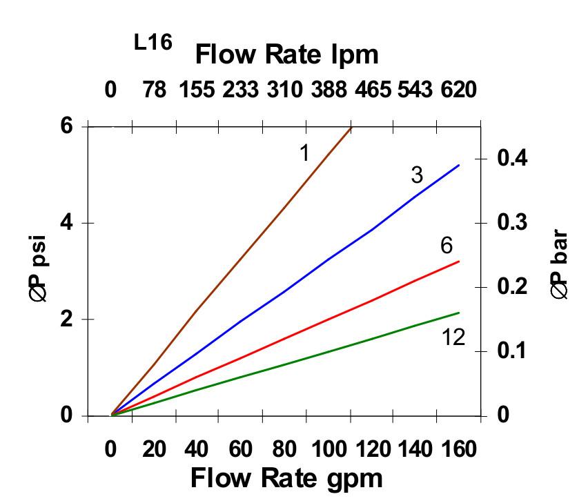 ตัวกรองนี้สามารถใช้งานร่วมกับของเหลวต่อไปนี้แต่การลดลงของความดันจะแตกต่างกันไปขึ้นอยู่กับความหนืดและอุณหภูมิ: