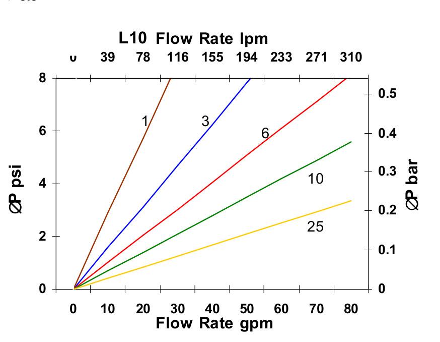 หมายเหตุ: การลดความดันอาจแตกต่างกันขึ้นอยู่กับความหนืดของเหลวและอุณหภูมิในการทำงาน