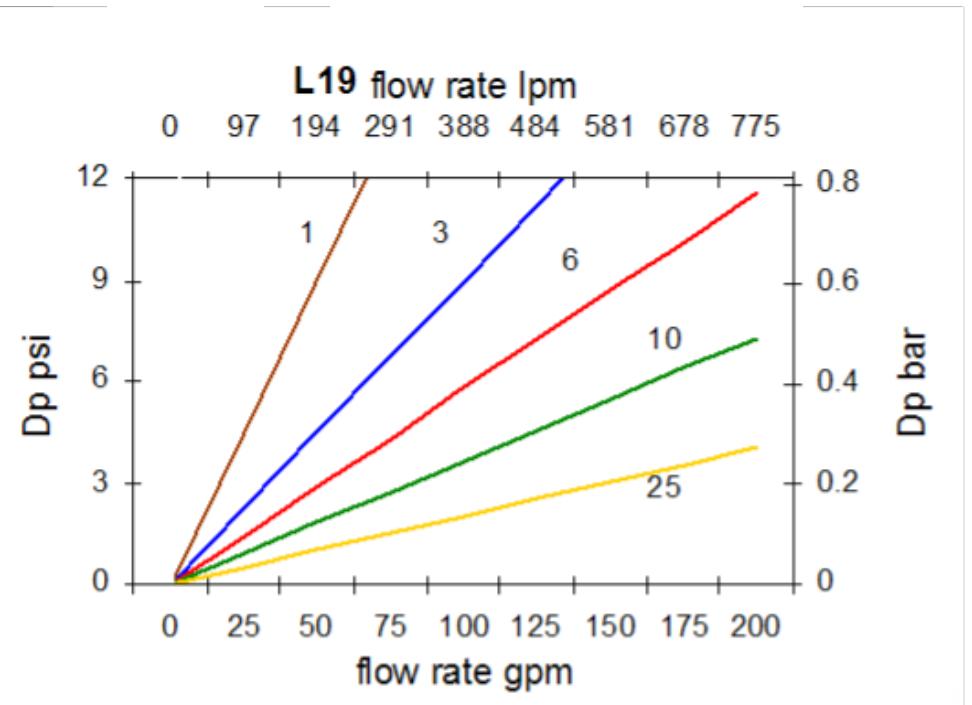 หมายเหตุ: การลดความดันอาจแตกต่างกันขึ้นอยู่กับความหนืดของเหลวและอุณหภูมิในการทำงาน