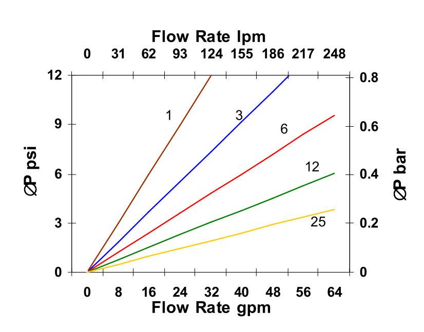 หมายเหตุ: การลดความดันอาจแตกต่างกันขึ้นอยู่กับความหนืดของเหลวและอุณหภูมิในการทำงาน