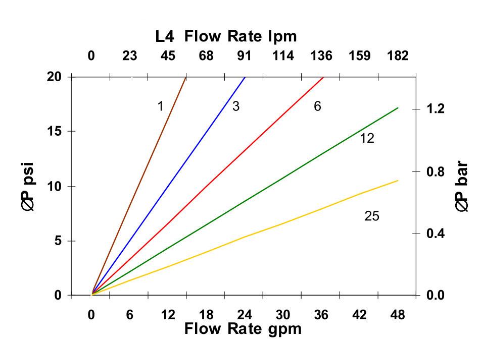 หมายเหตุ: การลดความดันอาจแตกต่างกันขึ้นอยู่กับความหนืดของเหลวและอุณหภูมิในการทำงาน
