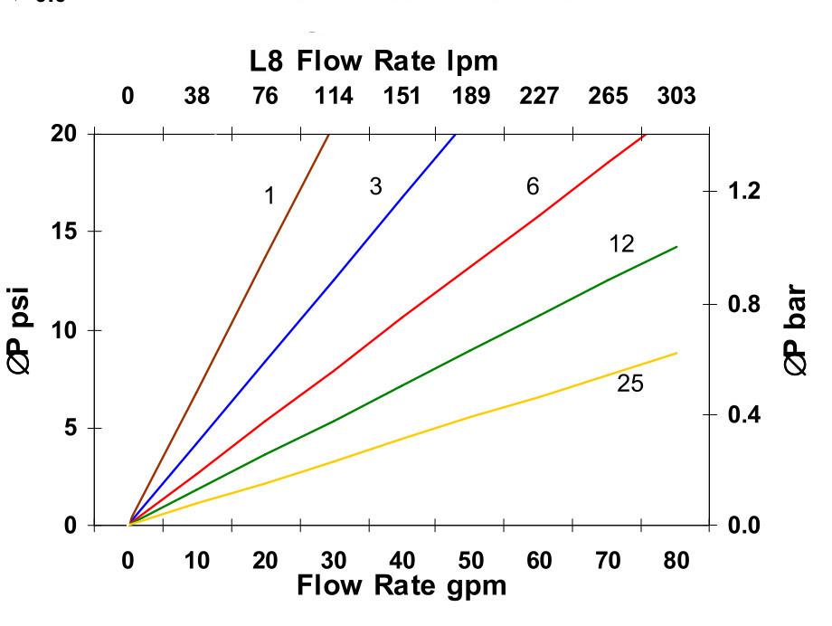 หมายเหตุ: การลดความดันอาจแตกต่างกันขึ้นอยู่กับความหนืดของเหลวและอุณหภูมิในการทำงาน