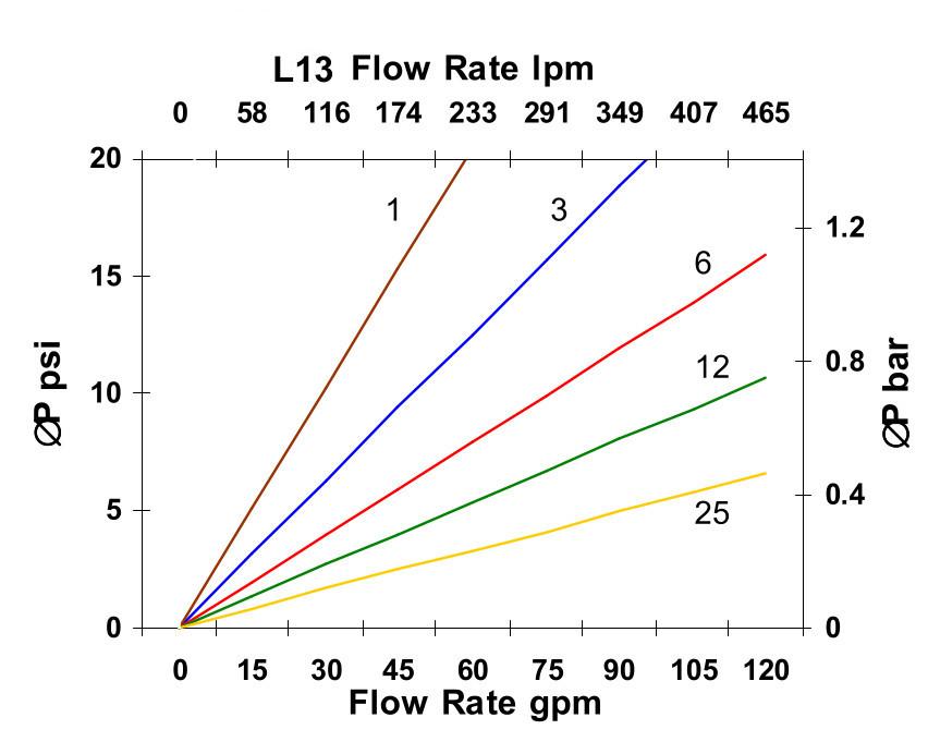 หมายเหตุ: การลดความดันอาจแตกต่างกันขึ้นอยู่กับความหนืดของเหลวและอุณหภูมิในการทำงาน