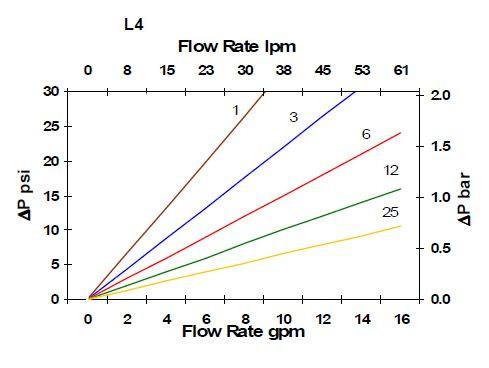 หมายเหตุ: การลดความดันอาจแตกต่างกันขึ้นอยู่กับความหนืดของเหลวและอุณหภูมิในการทำงาน