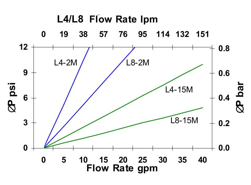 หมายเหตุ: การลดความดันอาจแตกต่างกันขึ้นอยู่กับความหนืดของเหลวและอุณหภูมิในการทำงาน