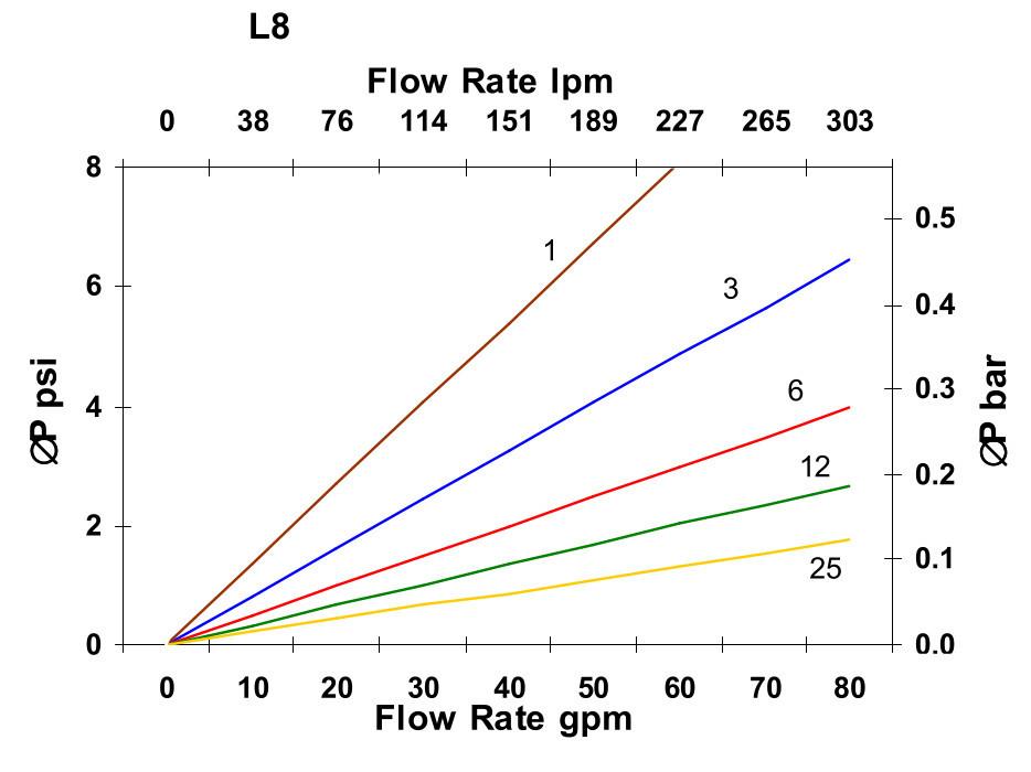 หมายเหตุ: การลดความดันอาจแตกต่างกันขึ้นอยู่กับความหนืดของเหลวและอุณหภูมิในการทำงาน