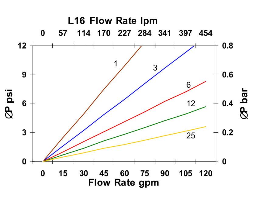 หมายเหตุ: การลดความดันอาจแตกต่างกันขึ้นอยู่กับความหนืดของเหลวและอุณหภูมิในการทำงาน