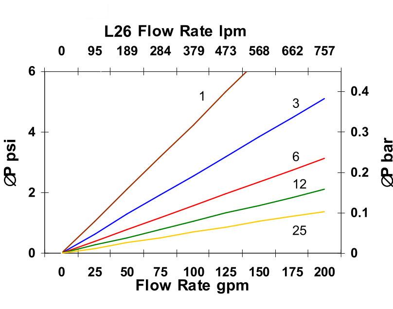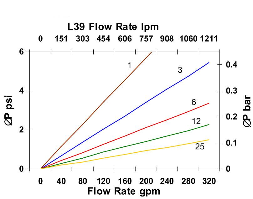 หมายเหตุ: การลดความดันอาจแตกต่างกันขึ้นอยู่กับความหนืดของเหลวและอุณหภูมิในการทำงาน