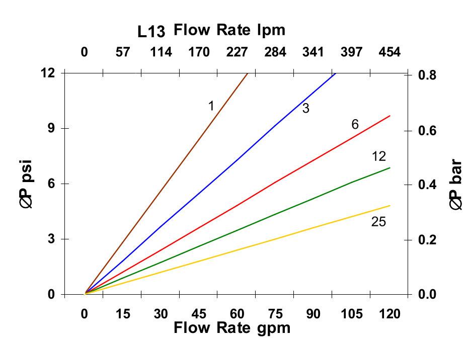 หมายเหตุ: การลดความดันอาจแตกต่างกันขึ้นอยู่กับความหนืดของเหลวและอุณหภูมิในการทำงาน