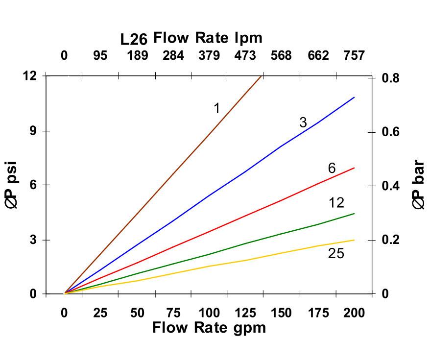 หมายเหตุ: การลดความดันอาจแตกต่างกันขึ้นอยู่กับความหนืดของเหลวและอุณหภูมิในการทำงาน
