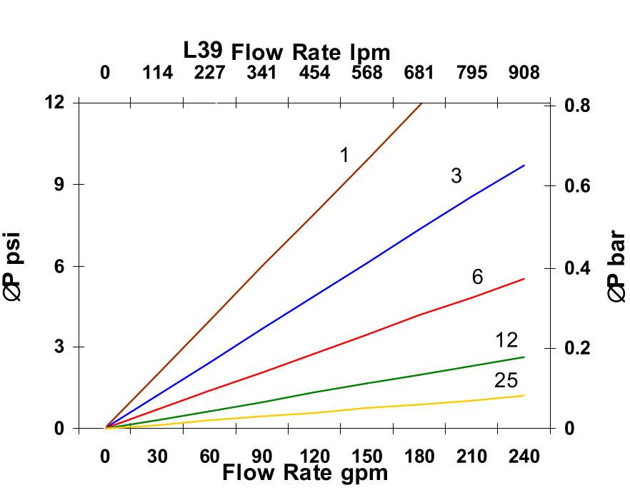 หมายเหตุ: การลดความดันอาจแตกต่างกันขึ้นอยู่กับความหนืดของเหลวและอุณหภูมิในการทำงาน