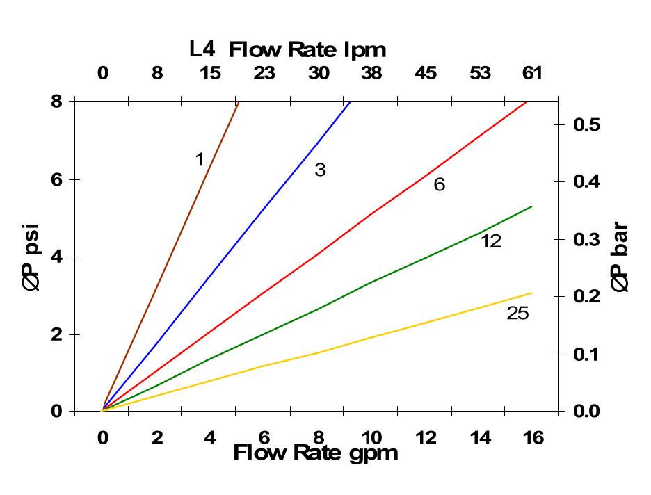 หมายเหตุ: การลดความดันอาจแตกต่างกันขึ้นอยู่กับความหนืดของเหลวและอุณหภูมิในการทำงาน