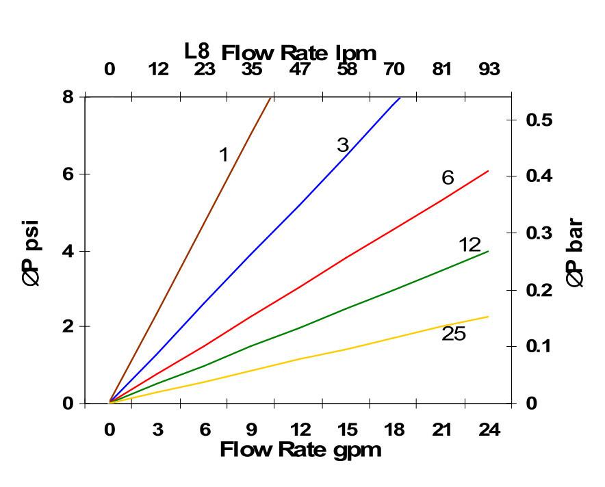 หมายเหตุ: การลดความดันอาจแตกต่างกันขึ้นอยู่กับความหนืดของเหลวและอุณหภูมิในการทำงาน