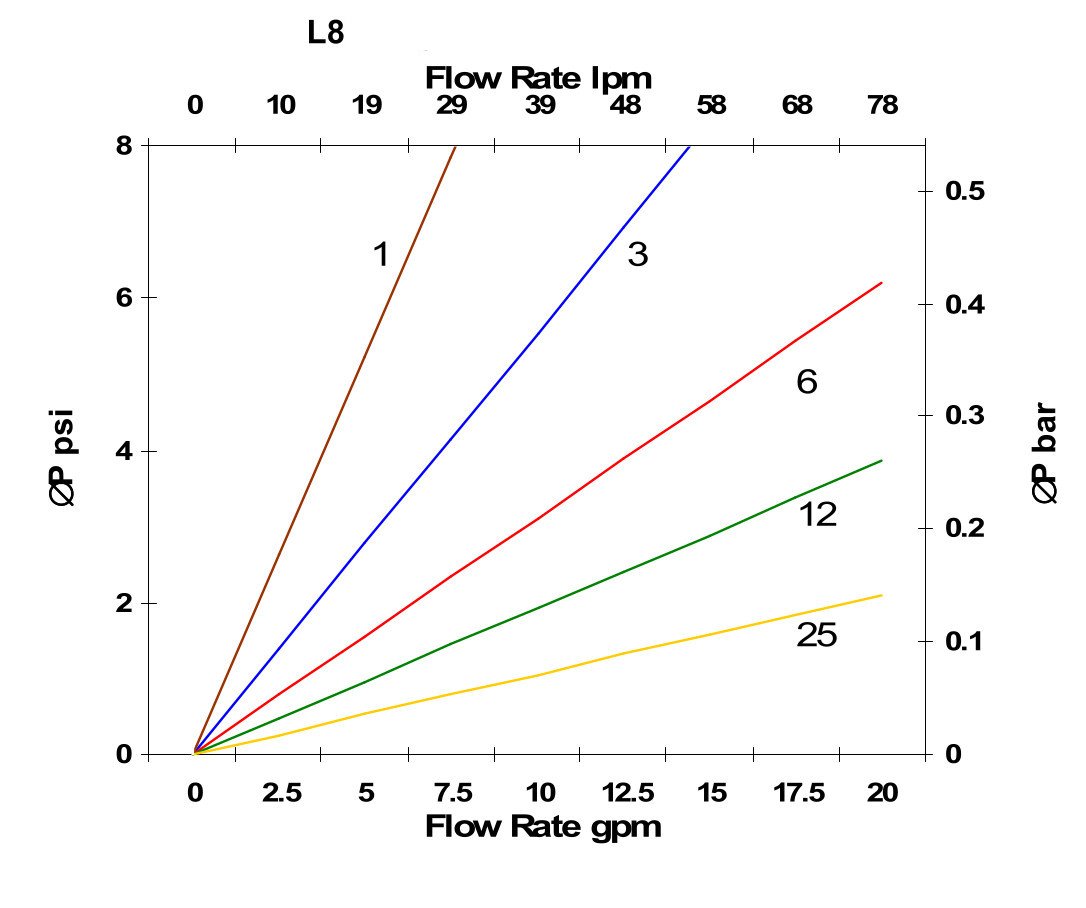 หมายเหตุ: การลดความดันอาจแตกต่างกันขึ้นอยู่กับความหนืดของเหลวและอุณหภูมิในการทำงาน