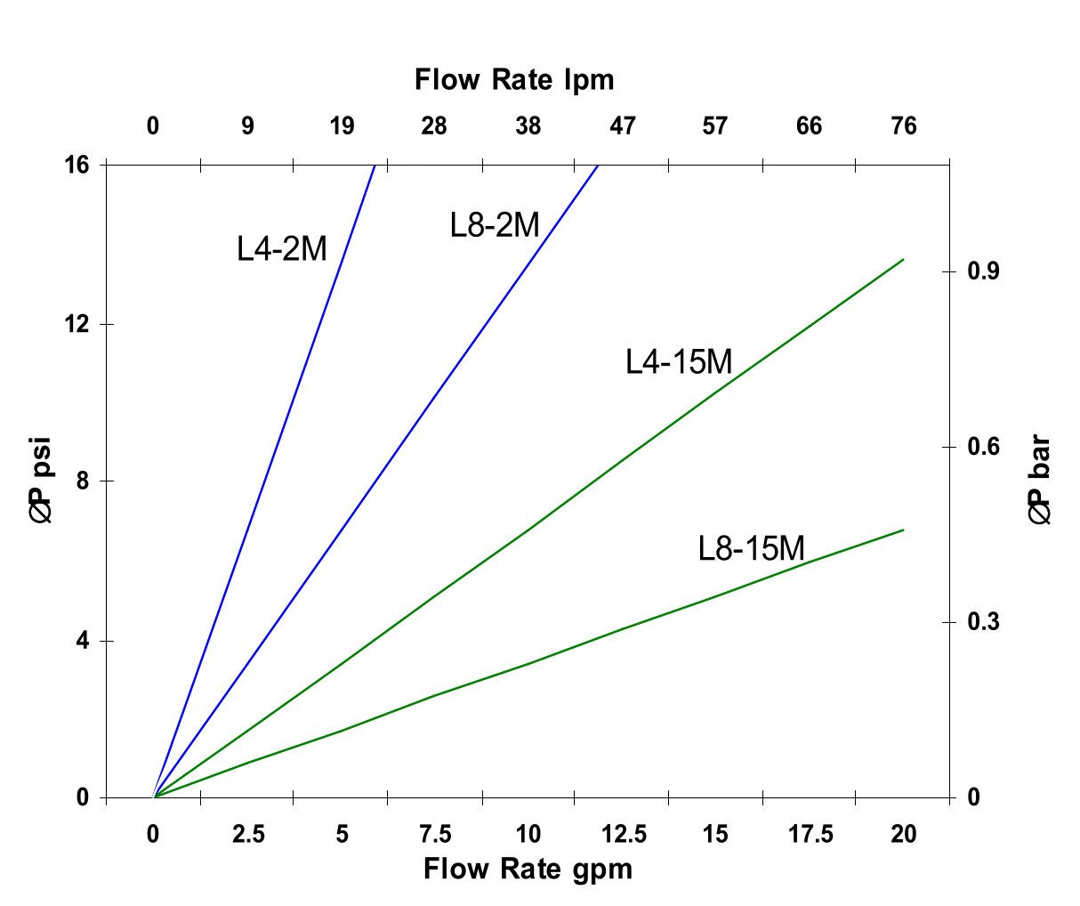 หมายเหตุ: การลดความดันอาจแตกต่างกันขึ้นอยู่กับความหนืดของเหลวและอุณหภูมิในการทำงาน